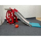 Kết hợp 2 trò chơi trong 1: cầu trượt + bóng rổ, giúp bé vừa vận động vừa rèn luyện sự khéo léo.