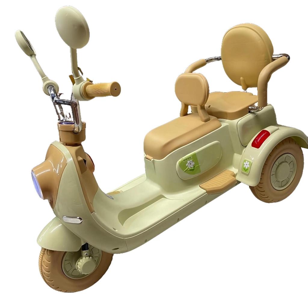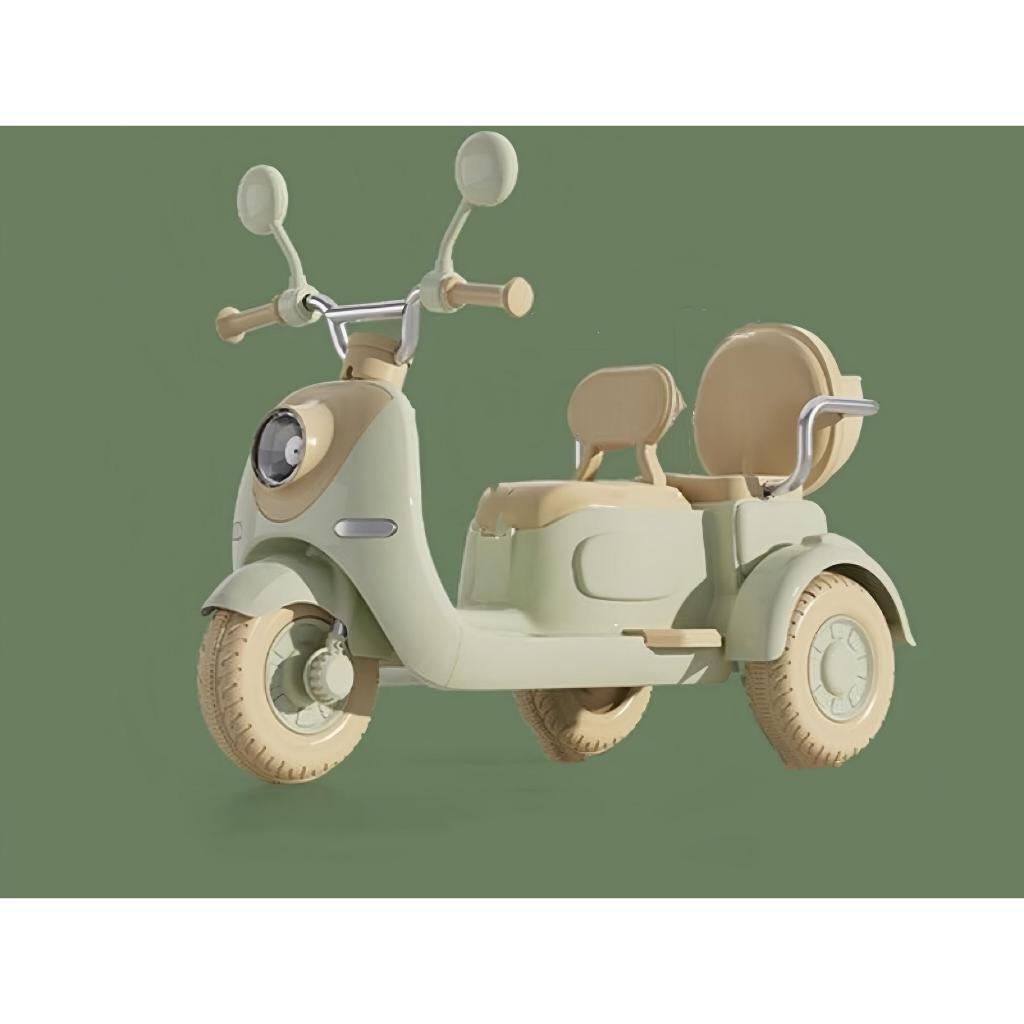 Xe máy điện xích lô cho 2 bé chơi thoải mái.